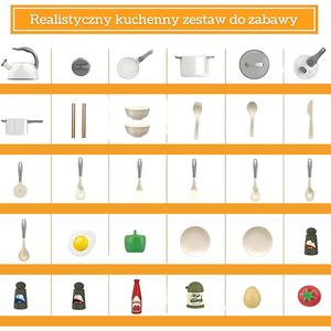 - - Realistyczne akcesoria, takie jak jajko sadzone, pomidor, warzywa i przyprawy.