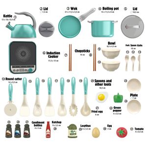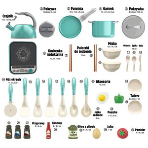 - - Realistyczne akcesoria, takie jak jajko, pomidor i przyprawy.